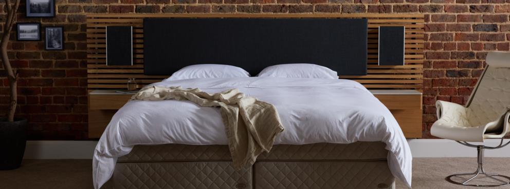 This headboard represents a collaboration between two industry leaders. The minimalistic design brings together innovative audio technology with supportive padding for added comfort.