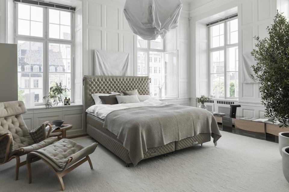 Legendary comfort and high frame DUX bed with dynamic two-layer spring construction.