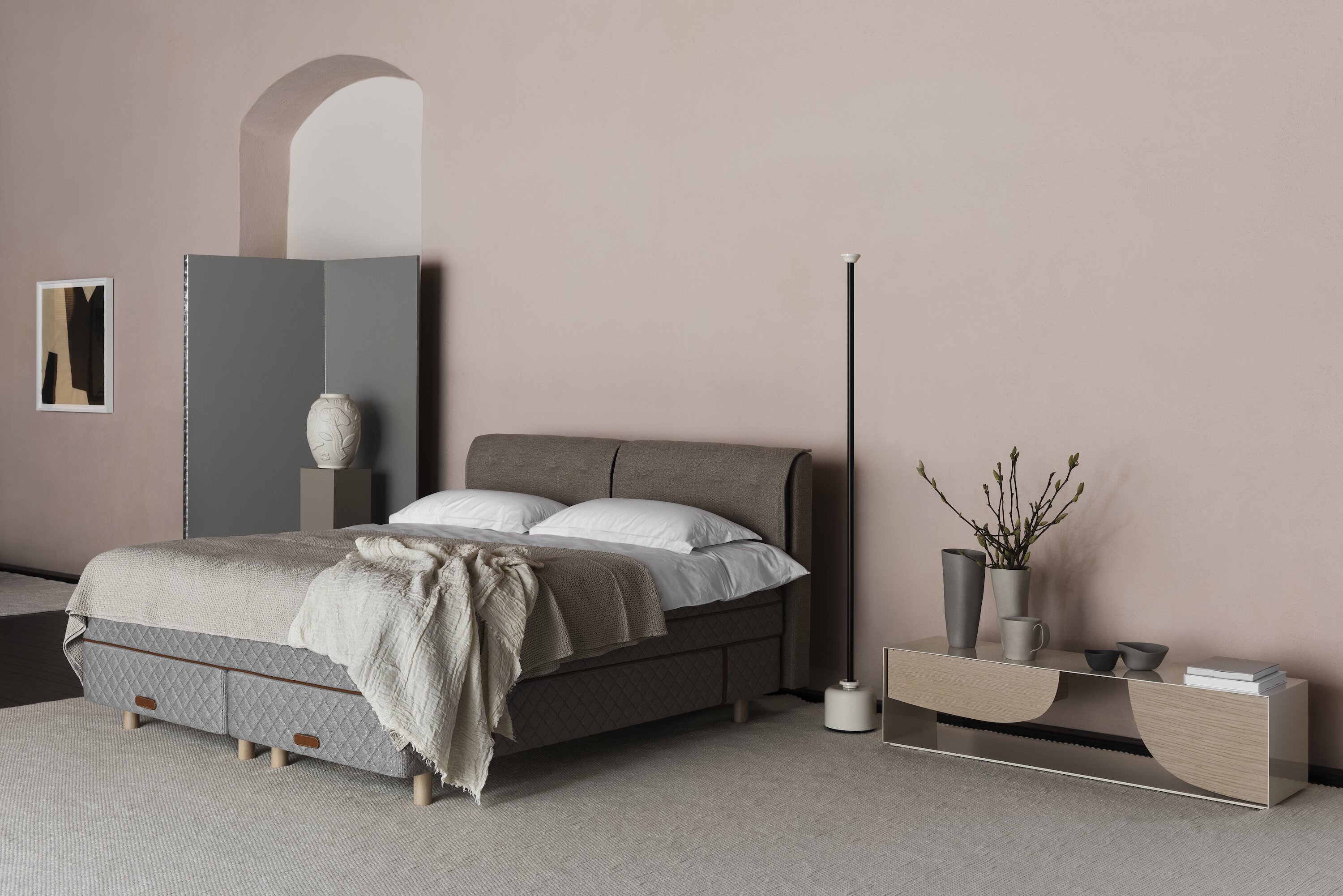 For a luxurious feeling, this gives both height and softness so the bed becomes your centrepiece.